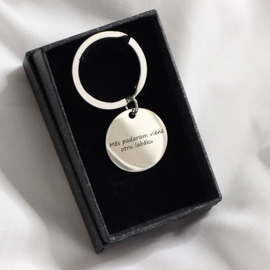 Gravēti atslēgu piekariņi ar Jūsu izvēlētu personalizāciju. Jauka ideja dāvanai, kas par Jums atgādinās ik dienu!